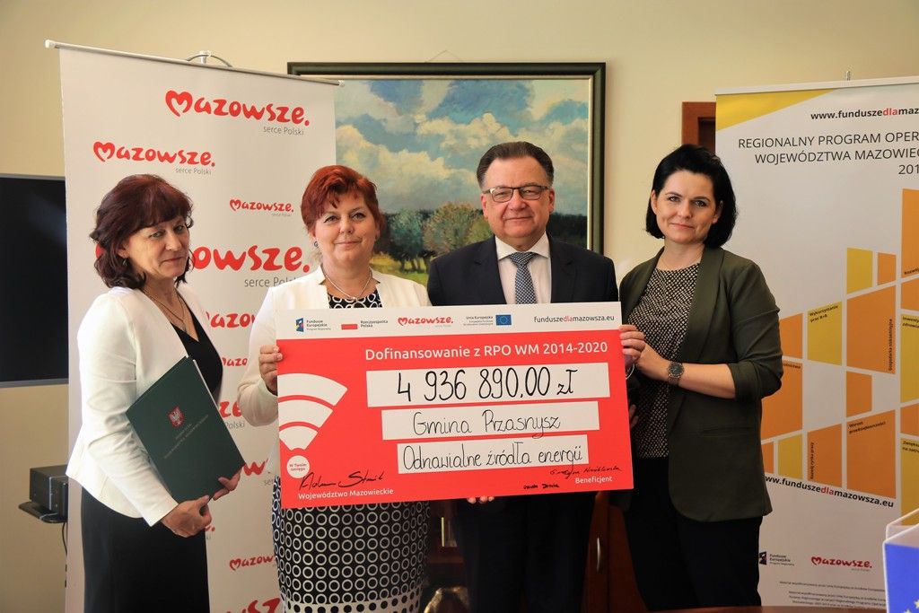 Można powiedzieć z radością: mamy to! Grażyna Wróblewska, wójt Gminy Przasnysz, podpisała we wtorek, 12 marca, umowę z Urzędem Marszałkowskim Województwa Mazowieckiego. Dzięki temu na projekty proekologiczne pozyskanych zostanie niemal 5 milionów złotych pochodzących ze środków unijnych. Cały projekt ma opiewać na niemal 8 milionów złotych.
