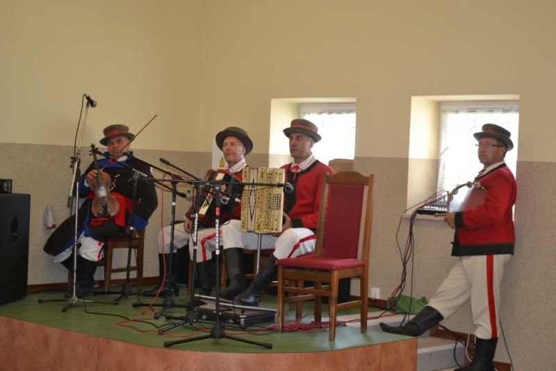 Oczywiście nie mogło zabraknąć też symbolicznej lampki szampana, „weselnego” tortu i mnóstwa życzeń dla jubilatów. Specjalnie też dla nich w Krępie wystąpiła kapela ludowa z Zawad, zaś krótką część artystyczną przygotowali pracownicy biblioteki.