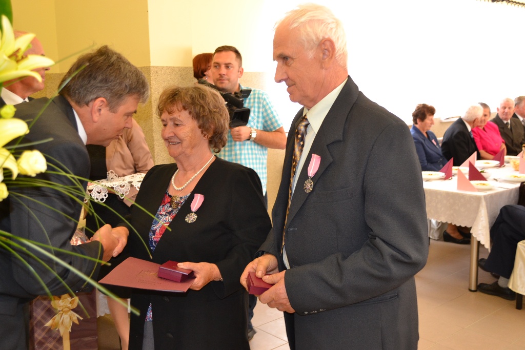 Dalsza, już świecka część uroczystości odbyła w świetlicy wiejskiej w Starej Krępie. Jubilatów i gości przywitała Pani Grażyna Wróblewska, która złożyła jubilatom życzenia i gratulacje. Następnie wręczono medale przyznane przez Prezydenta Rzeczpospolitej Polskiej za długoletnie pożycie małżeńskie, dyplomy oraz upominki.