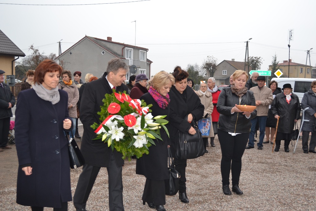 Po wysłuchaniu koncertu władze gminy i jej mieszkańcy odwiedzili w zwartej kolumnie miejsca pamięci znajdujące się na terenie sołectwa: tablicę ku czci Tadeusza Kościuszki, pomnik poległych i pomordowanych z lat 1939-1956 oraz obelisk upamiętniający Józefa Narzymskiego. Tu delegacja z gminy, na czele z wójt Grażyną Wróblewską, złożyła kwiaty i zapaliła znicze.