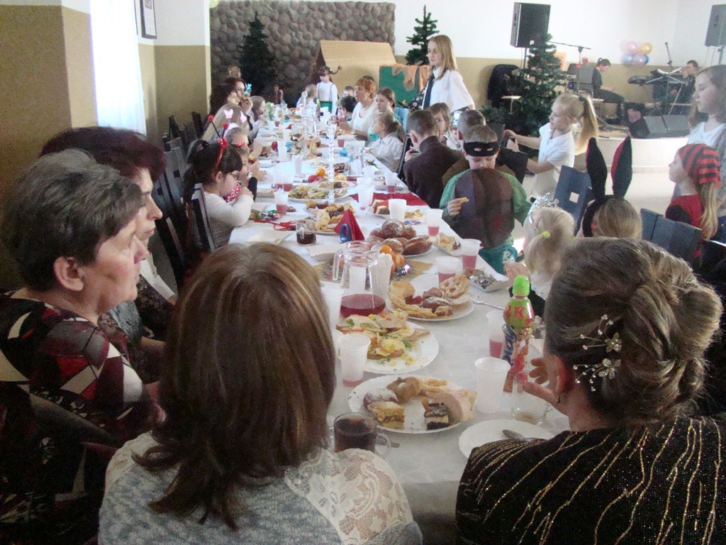 Dla wszystkich obecnych przygotowany został poczęstunek, o który zadbali rodzice i Koło Gospodyń Wiejskich z Mchowa. Goście z Obręba przywieźli w darze mnóstwo pączków i ciasto, przygotowali upominki – serca walentynkowe. Uczniowie, nauczyciele i rodzice obydwu szkół oraz członkowie KGW „Szansa Mchowa” włożyli wiele serca i zaangażowania w przygotowanie wspólnej imprezy. Pomysł wójt Grażyny Wróblewskiej zorganizowania imprezy integracyjnej sąsiadujących ze sobą miejscowości okazał się strzałem w dziesiątkę. I już zaowocował dalszą współpracą – społeczność Mchowa została bowiem zaproszona w najbliższej przyszłości do Obręba na swoistą rewizytę.