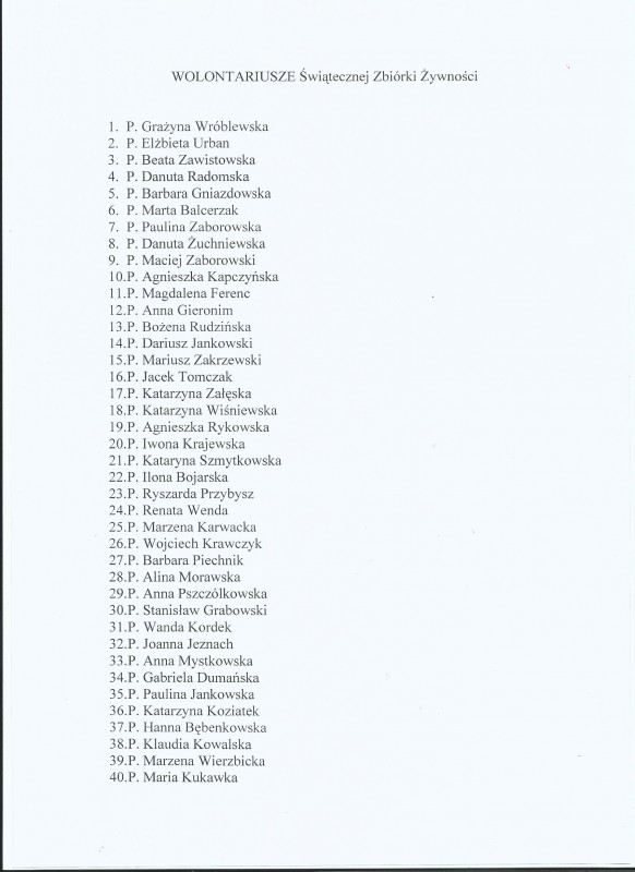 Za owocną współpracę organizatorzy pragną złożyć gorące podziękowania wszystkich osobom zaangażowanym w Świąteczną Zbiórkę Żywności, a ludziom dobrej woli – podziękowania za wsparcie naszej akcji.
