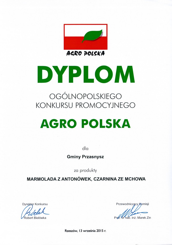 Wczesną wiosną tego roku marszałek województwa mazowieckiego Adam Struzik nominował Gminę Przasnysz do ogólnopolskiego konkursu AGRO POLSKA właśnie dzięki marmoladzie i czarninie. W maju reprezentantki gminy pojechały do Rzeszowa na specjalną prezentację konkursową. Ocena musiała wypaść na tyle zadowalająco, że kilka tygodni później do urzędu dotarła widomość o pozytywnym efekcie prezentacji. Finał całego konkursu miał miejsce 13 września, podczas wspomnianej gali.
