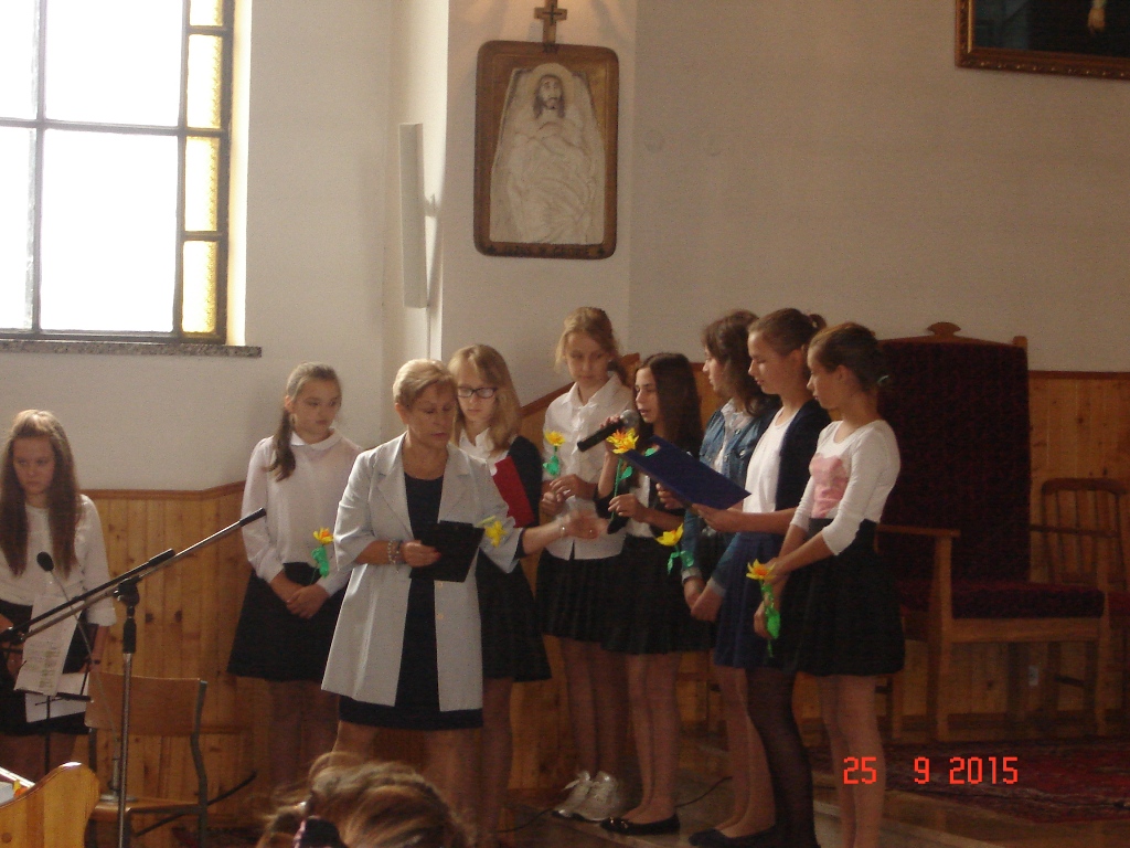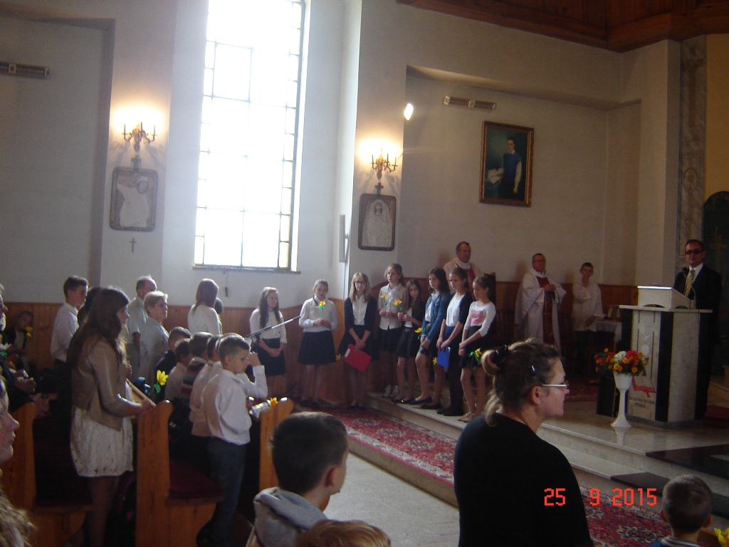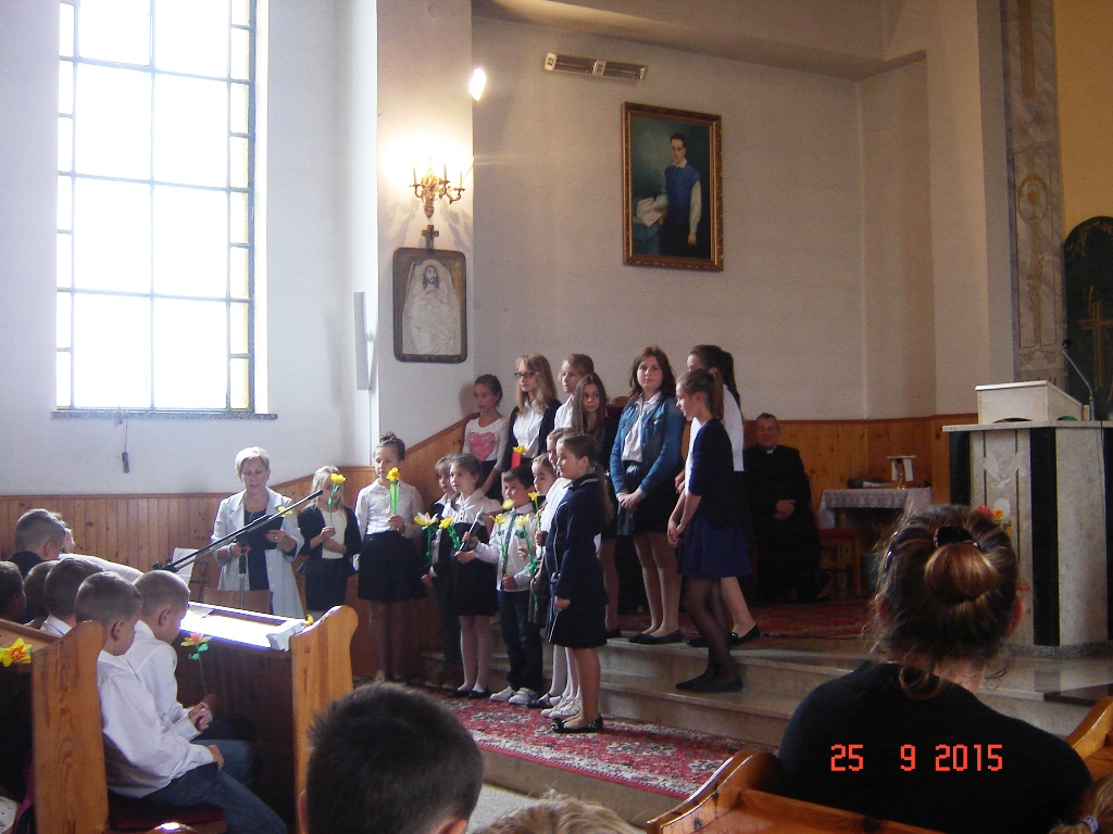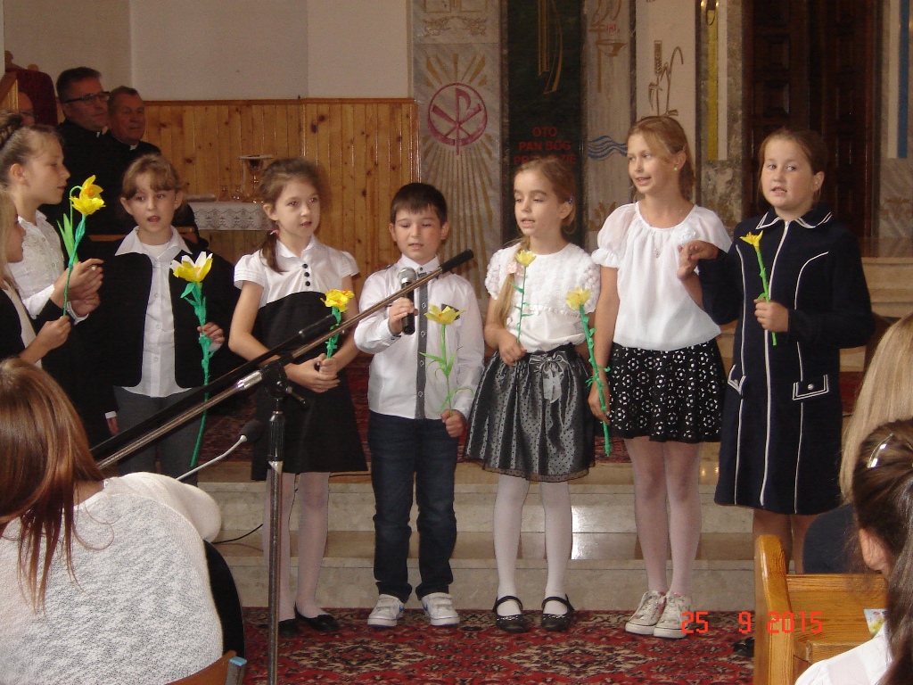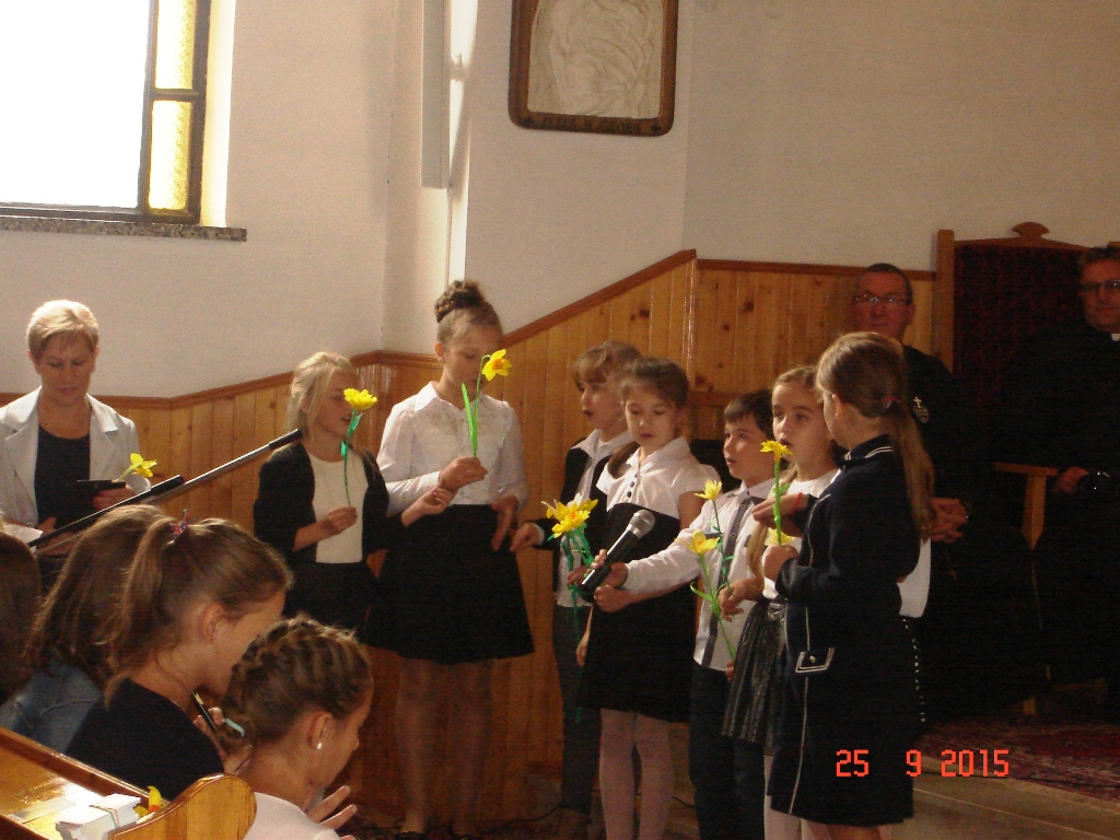 Akcja „Pola Nadziei” w Lesznie odbyła się w miniony piątek, 25 września. Zapoczątkowana została wspólnym zdjęciem wykonanym na schodach prowadzących do tutejszego Zespołu Szkół. Stąd wszyscy przemaszerowali uroczyście do kościoła. Tu odprawiono mszę świętą celebrowaną przez proboszcza Wiesława Wiśniewskiego i ks. Szczepana Bugaja, dyrektora „Caritas” Diecezji Płockiej. W świątyni odbyła się także krótka część artystyczna w wykonaniu uczniów tutejszej szkoły kierowanych przez panią Teresę Sielską.