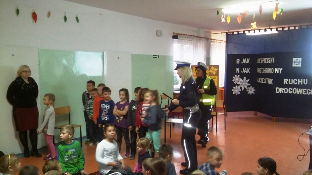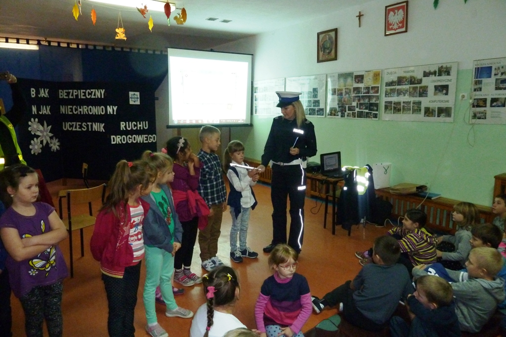 Na zaproszenie odpowiedziały funkcjonariuszki policji Anna Chylińska oraz Paulina Kasprowicz. Głównym celem spotkania było uświadomienie dzieciom, ich babciom i dziadkom o konieczności noszenia odblasków. Uczestnikom spotkania zaprezentowano m.in. pokaz multimedialny, w którym przypomniano zasady ruchu drogowego obowiązujące pieszych i rowerzystów.