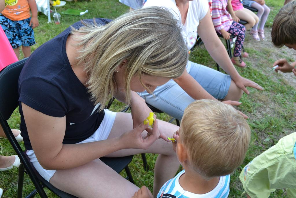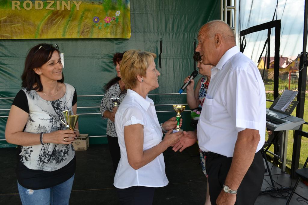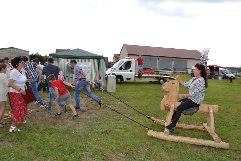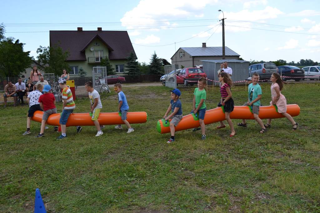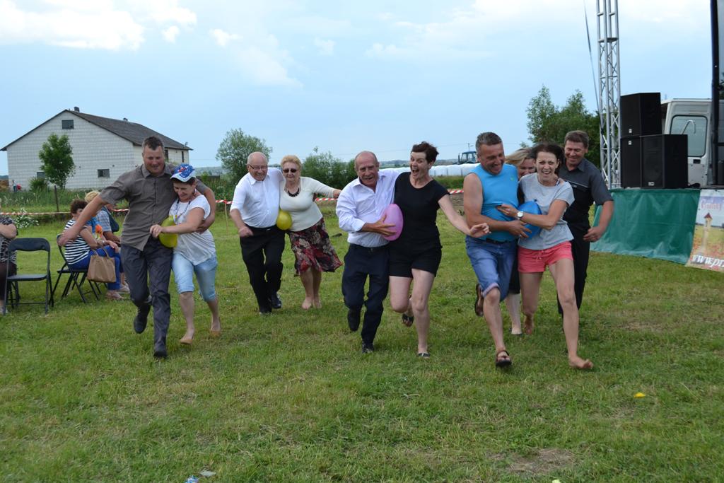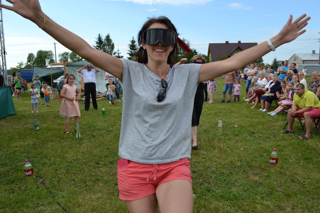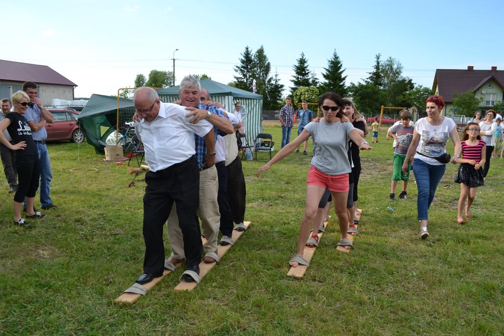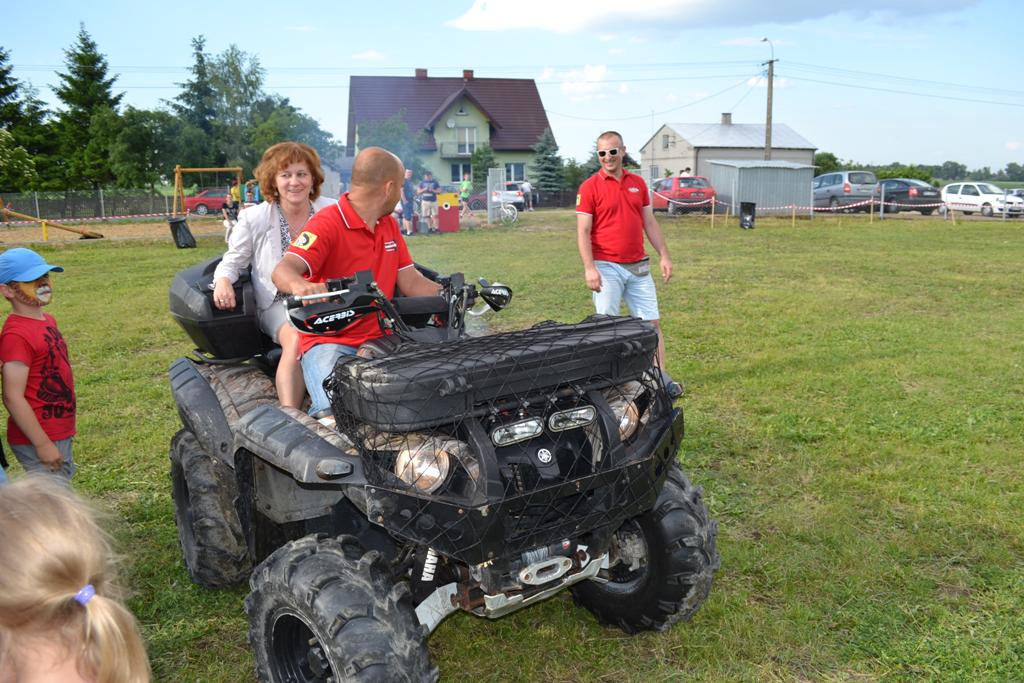 Następnym punktem pikniku był blok gier i zabaw, w których mogły wziąć udział całe rodziny. W ciągu kilku godzin można było spróbować swych sił w takich dyscyplinach jak bieg parami, slalom w alkogoglach czy sztafeta w nartach. Co ważne, w zabawach uczestniczyli nie tylko najmłodsi – często warunkiem był udział kilku pokoleń w konkretnych konkurencjach. Kto zaś nie chciał rywalizować o nagrody, mógł skorzystać np. z przejażdżki quadem. Jako pierwsza została przewieziona sama wójt Grażyna Wróblewska, która była przez cały czas obecna na pikniku.