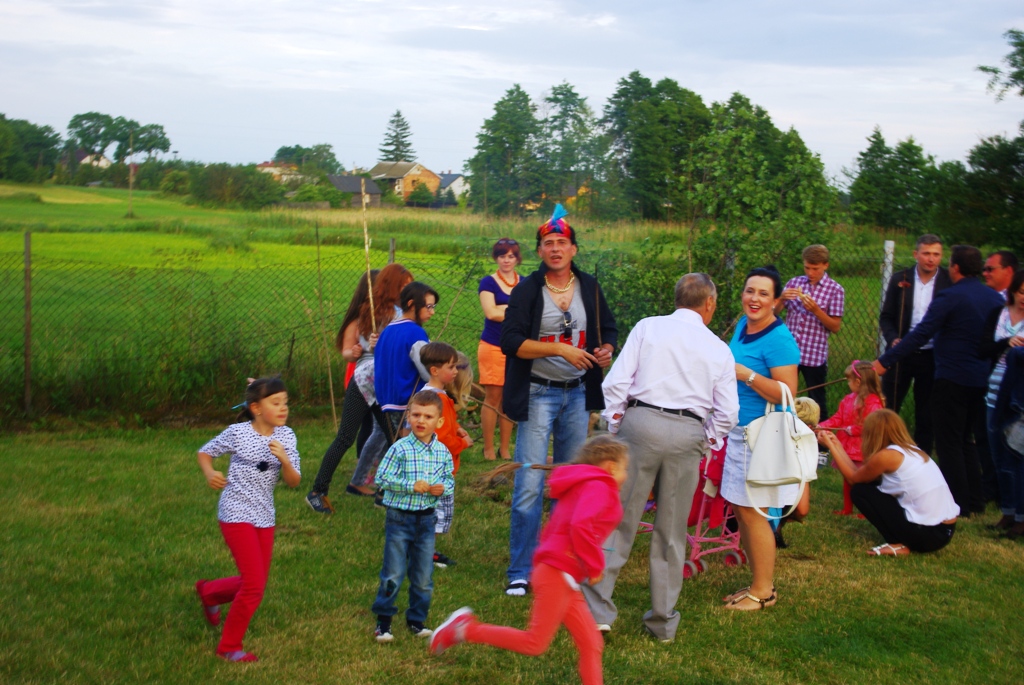 Później zebrani goście spotkali się przed świetlicą, by tu przy rozpalonym ognisku upiec sobie kiełbaski i wziąć udział we wspólnych zabawach rodzinnych. Dla najmłodszych znalazł się także słodki poczęstunek. Spotkanie to przeciągnęło się aż do późnego popołudnia, czemu sprzyjała pogoda. Wieczorem natomiast dla wszystkich chętnych odbyła się jeszcze ludowa zabawa, która zgromadziła zarówno młodzież, jak i osoby dorosłe.