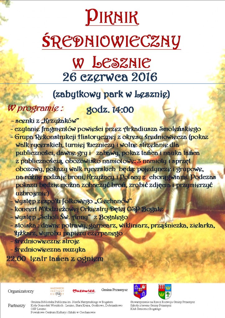 Wójt Gminy Przasnysz Grażyna Wróblewska zaprasza wszystkich mieskańców gminy i powiatu przasnyskiego na Piknik Średniowieczny organizowany z okazji Roku Sienkiewiczowskiego organizowanego wespół z Mazowieckiem Instytutem Kultury.