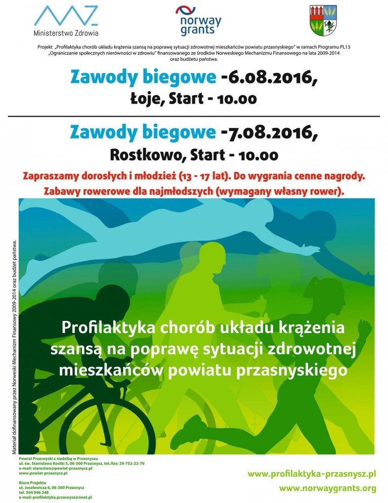 Zapraszamy do udziału w kolejnych wydarzeniach sportowych organizowanych w ramach Projektu pn. „Profilaktyka chorób układu krążenia szansą na poprawę sytuacji zdrowotnej mieszkańców powiatu przasnyskiego” w Programie PL13 Ograniczenie społecznych nierówności w zdrowiu finansowanego ze środków Norweskiego Mechanizmu Finansowego 2009-2014 oraz budżetu państwa.