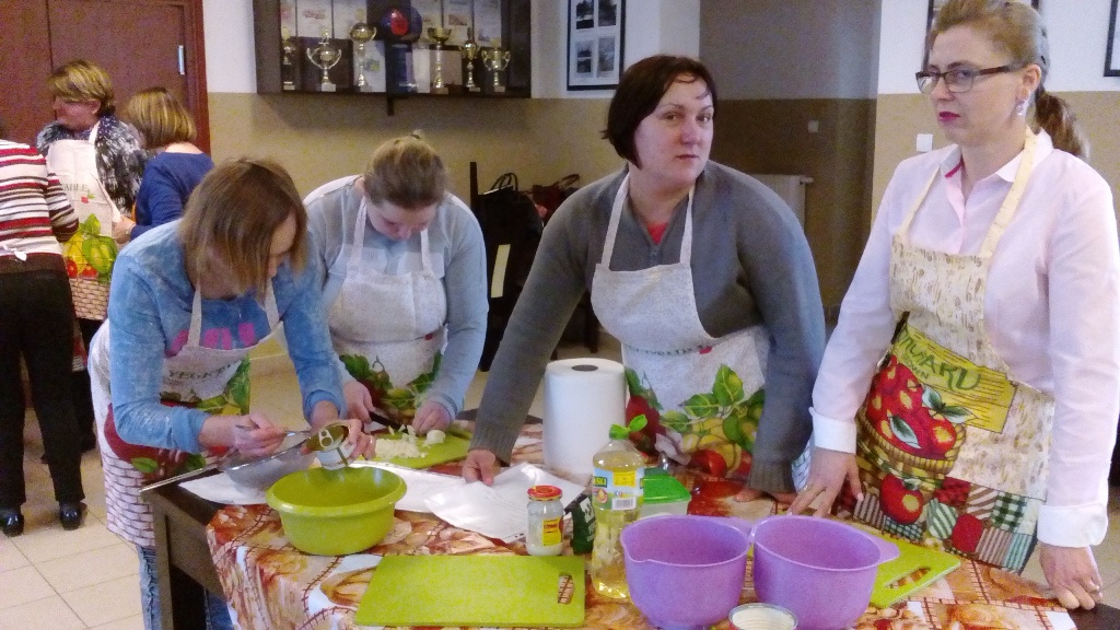 Podczas warsztatów 14 kobiet z terenu gminy Przasnysz przygotowywało między innymi: risotto z marchewką i groszkiem, pastę z makreli, pastę z fasoli, pastę z jaj z chrzanem, makaron z sosem pomidorowo-paprykowym brownie z jabłkami.