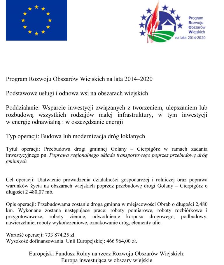 Szczegóły dotyczące remontu dróg Golany - Cierpigórz oraz Obrąb można znaleźć poniżej.