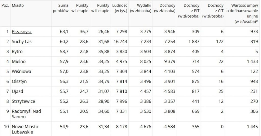 To właśnie stanowiło podstawę ułożenia ostatecznej klasyfikacji. I jest dowodem na to, że nasza gmina okazała się najlepsza dzięki obiektywnym wskaźnikom, a nie subiektywnym ocenom. Jest to zarazem najlepszy dowód na sprawność przasnyskiego samorządu w zarządzaniu majątkiem gminnym i wykorzystywaniem szans płynących ze strony Unii Europejskiej.