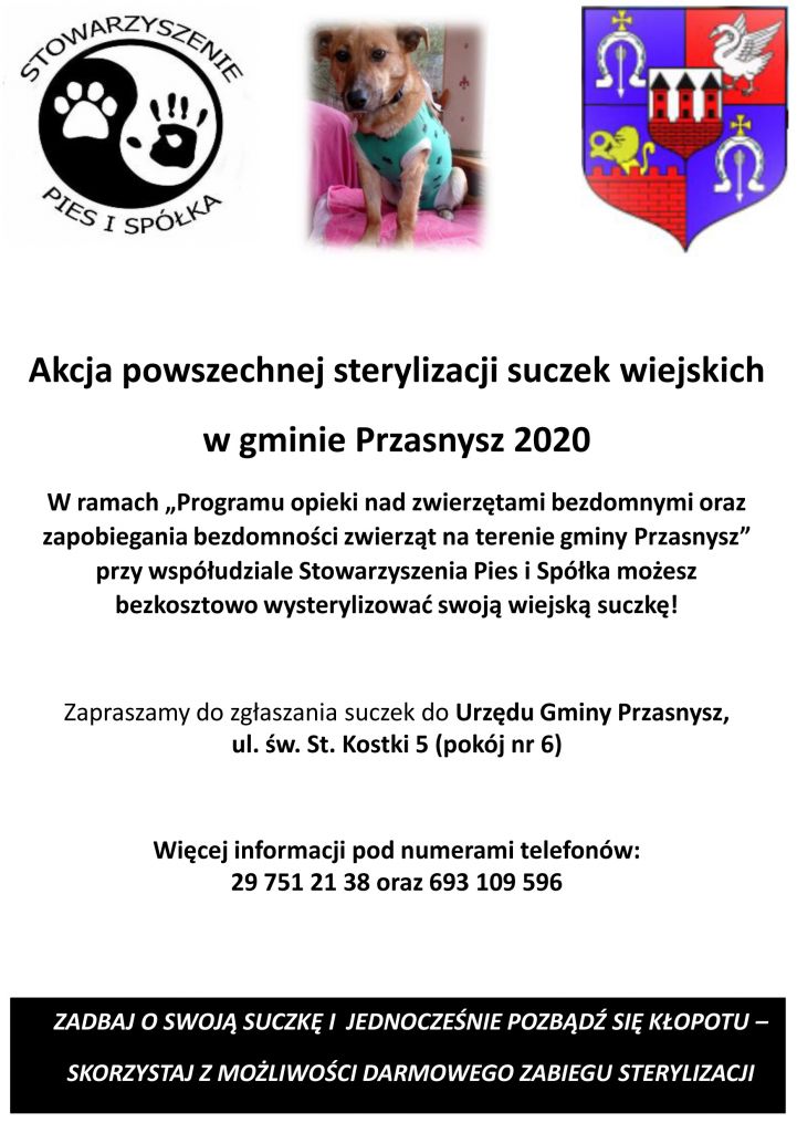 Zapraszamy do zapoznania się z informacją na temat bezpłatnej sterylizacji suczek wiejskich na terenie gminy Przasnysz. Więcej szczegółów związanych z działaniami Stowarzyszenia "Pies i Spółka" można znaleźć poniżej.