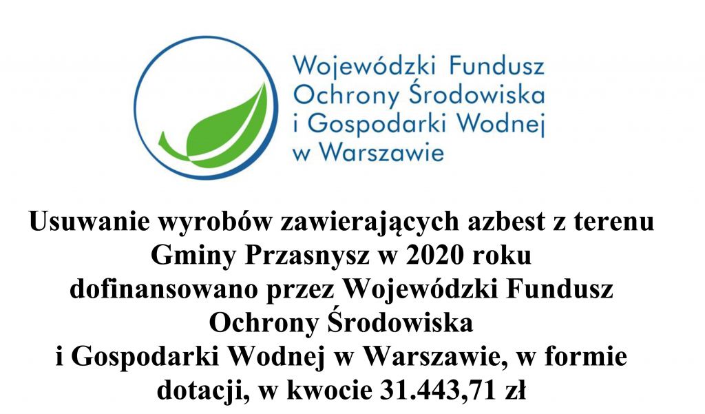 Tradycją stało się, że Gmina Przasnysz rokrocznie znajduje się w gronie beneficjentów programów dofinansowujących prace przy usuwaniu azbestu z dachów mieszkańców naszej gminy. Nie inaczej jest w roku 2020. Samorząd pozyskał na ten cel ponad 31 tysięcy złotych z Wojewódzkiego Funduszu Ochrony Środowiska i Gospodarki Wodnej w Warszawie. Stosowną umowę podpisano 19 sierpnia.