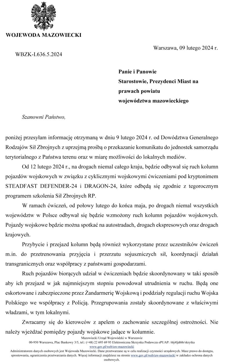 Ćwiczenia wojskowe STEADFAST DEFENDER 24 - utrudnienia w ruchu drogowym