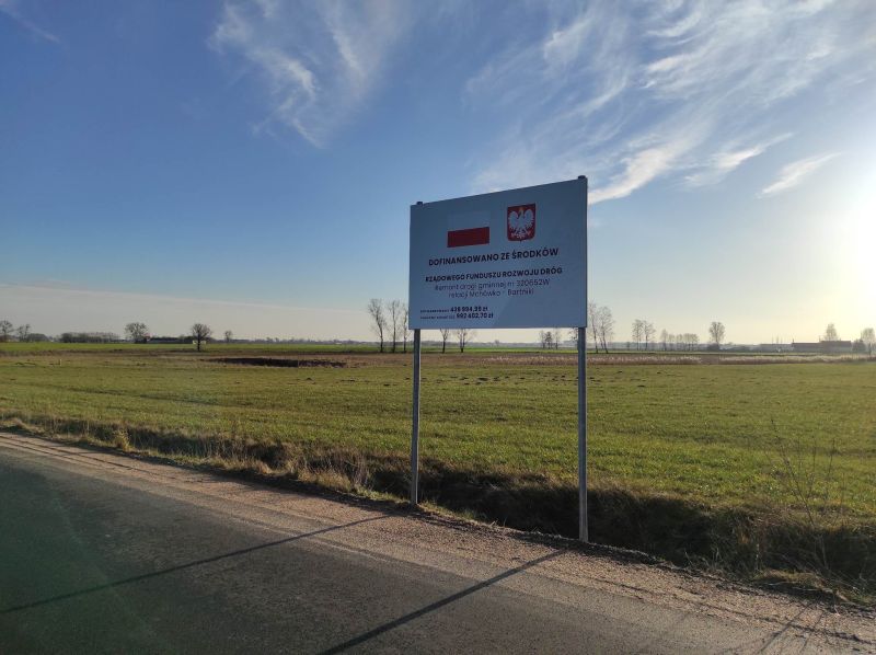 W grudniu 2022 r. zakończyły się prace związane z realizacją zadania pn. „Remont drogi gminnej nr 320652W relacji Mchówko - Bartniki” współfinansowanego w ramach Rządowego Funduszu Rozwoju Dróg.