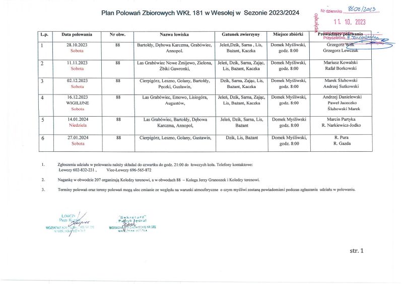 Obwieszczenie - plan polowań kół łowieckich na terenie gminy Przasnysz